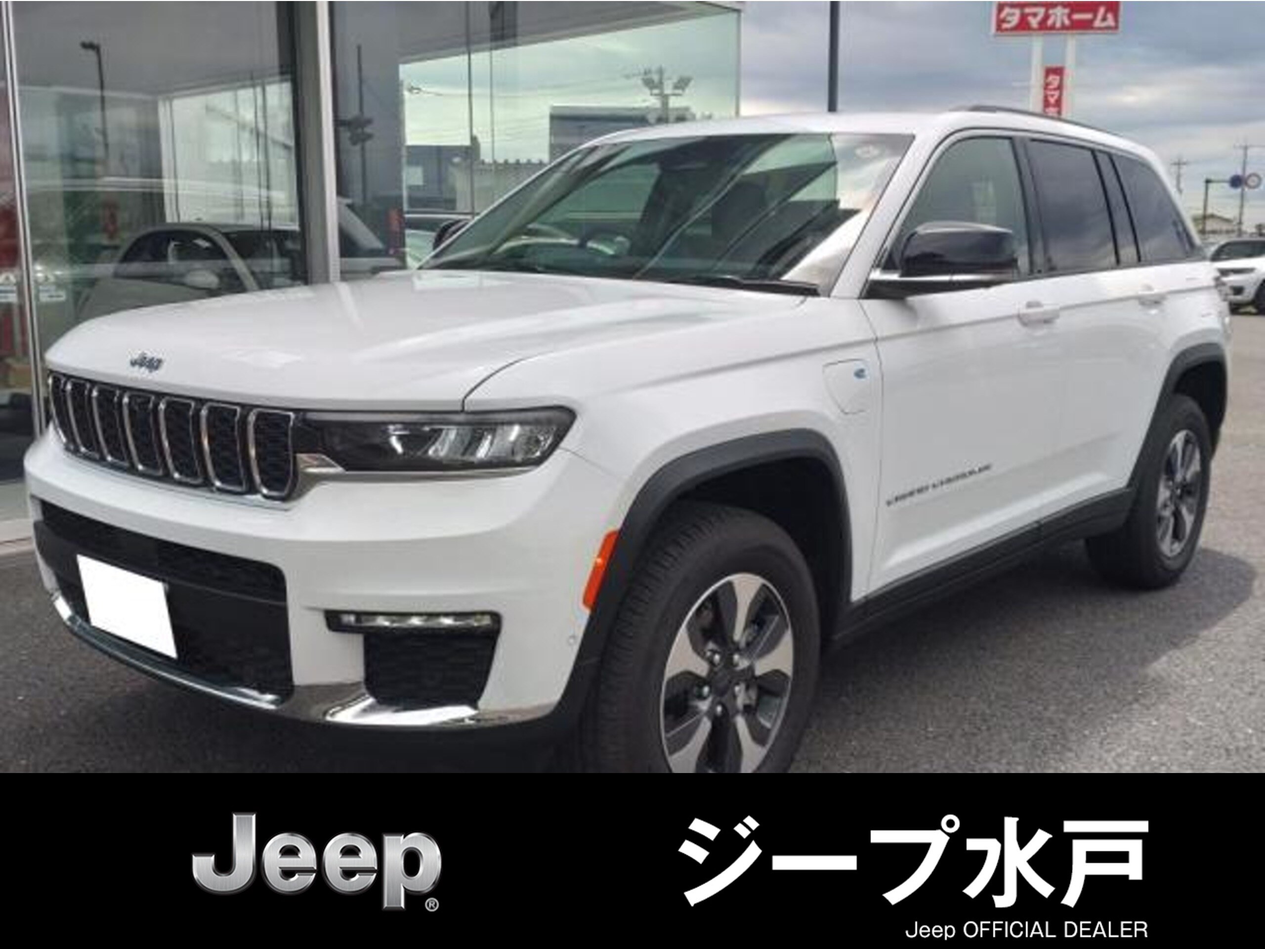 This is a Jeep Grand Cherokee Limited 4xe, a plug-in hybrid SUV with 4WD capability. It features a turbocharged engine and an 8-speed automatic transmission with manual mode. The vehicle is presented in a clean white exterior color.