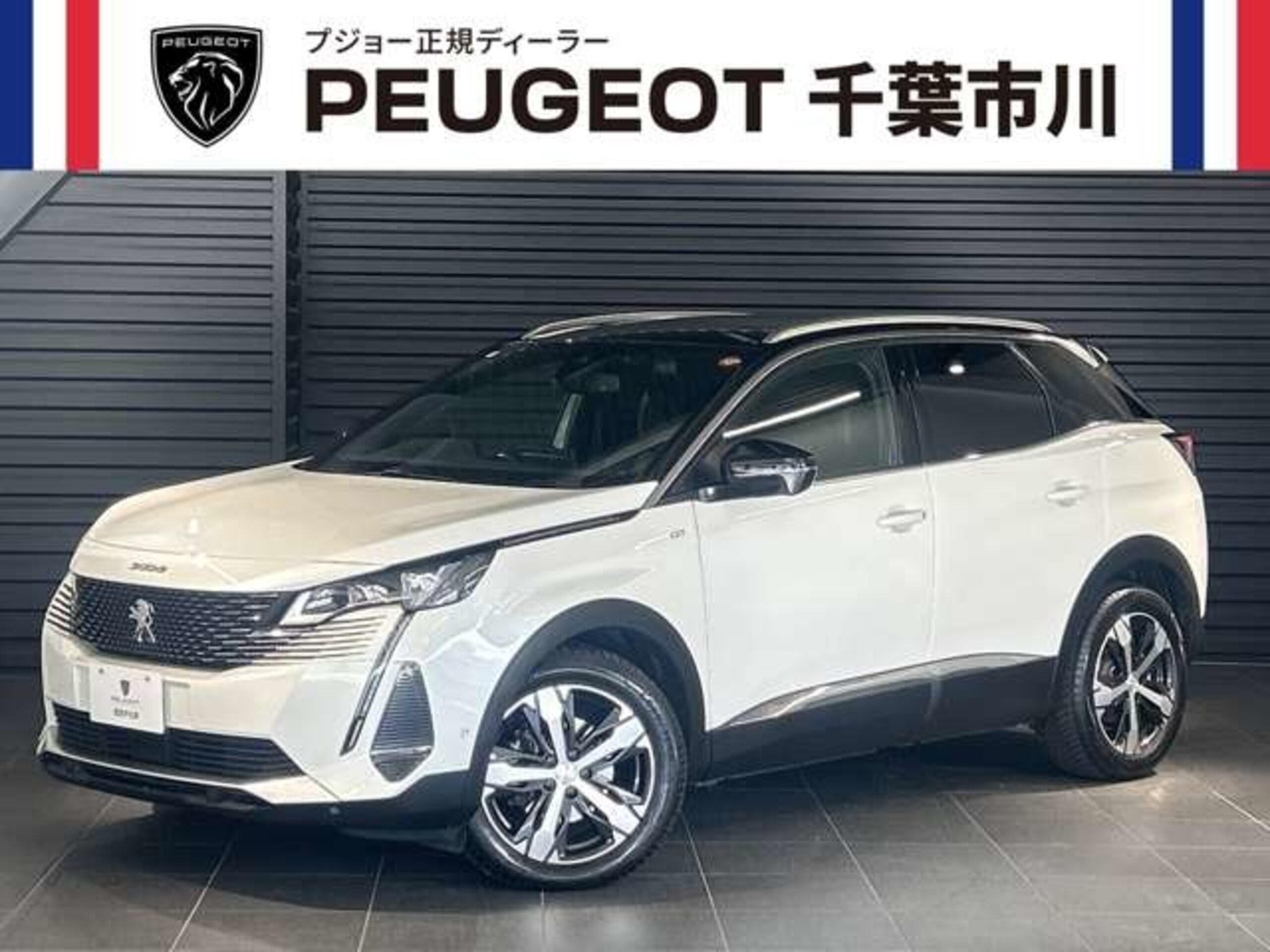 This is a one-owner Peugeot 3008 GT, the final gasoline model, sold with area-specific conditions. It is a certified used car with factory navigation, TV, an around-view monitor, ETC, panoramic glass roof, and half-laser headlights. The sale includes the new car warranty transfer (eligible at official dealers nationwide), manuals, service records, and a spare key.