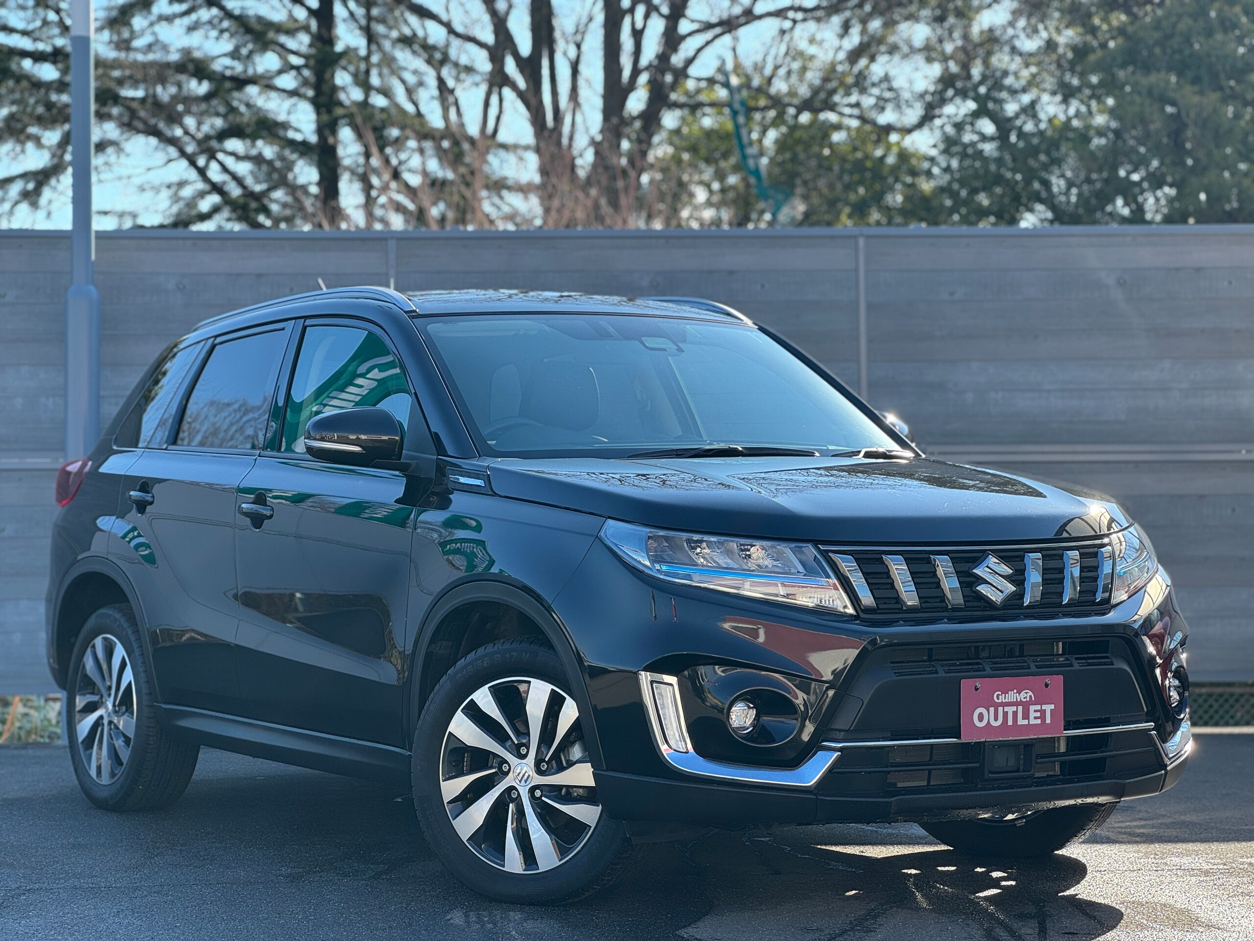 This Suzuki Escudo 1.5 features 4WD capability and a comprehensive safety package including adaptive cruise control and blind spot monitoring. It is equipped with an 8-inch factory navigation system, digital TV, DVD/CD player, Bluetooth, seat heaters, and an idle stop system. The vehicle is finished in Cosmic Black Pearl Metallic.