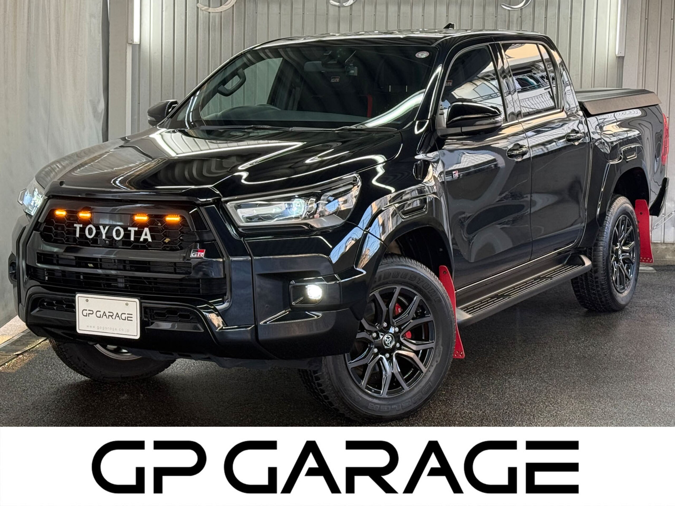 This is a one-owner Toyota Hilux 2.4 Z with a diesel turbo engine and 4WD. It features numerous factory and TRD accessories including a bed liner, hard tonneau cover, and panoramic view monitor. The vehicle is equipped with a 6-speed automatic transmission, ETC, and a drive recorder.